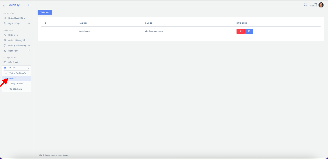 Tiếp đến bấm chuột Mail CC bên Menu trái nhập các thông tin Mail: