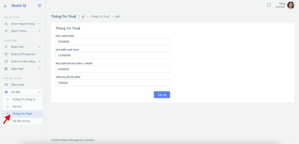 Sau đó bấm nút Lưu lại để thông tin được Lưu trữ cập nhật.